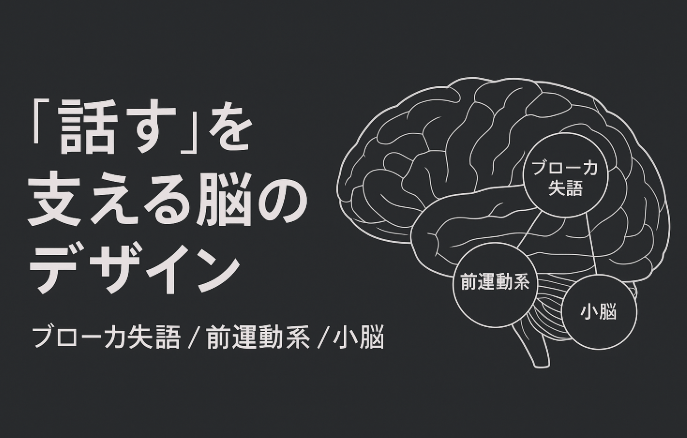 言葉を話すことは、私たちにとってあまりに当たり前で、つい“口が勝手に動く”かのように感じます。けれど実際には、脳の中で「何を言うかを選ぶ」「文を組み立てる」「音を並べる」「舌や口をどう動かすかを計画する」「タイミングを合わせる」という複数の工程が、驚くほど精密に連携して初めて成立します。本稿では、臨床でも頻繁に出会うブローカ失語を入口に、ブローカ野の役割、書字との関連、さらに前運動系と小脳という“運動の要”が言語にどう関わるかまでを、現場で使える視点で整理します。