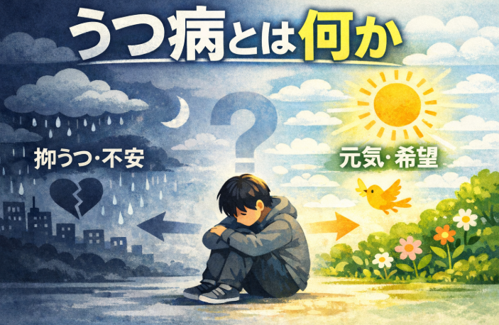 「うつ病」と聞いたとき、多くの人は“気分が落ち込む病気”“やる気が出なくなる状態”といったイメージを思い浮かべるかもしれませんが、実際のうつ病は単なる気分の落ち込みというよりも、脳・身体・思考・人間関係・社会環境といった複数の層が同時に絡み合いながら、本人の生活の流れそのものを変えてしまう状態として理解したほうが、現実に近いと思います。